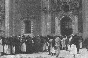 | Fila na Catedral da Cidade do México, após o anúncio do fechamento |